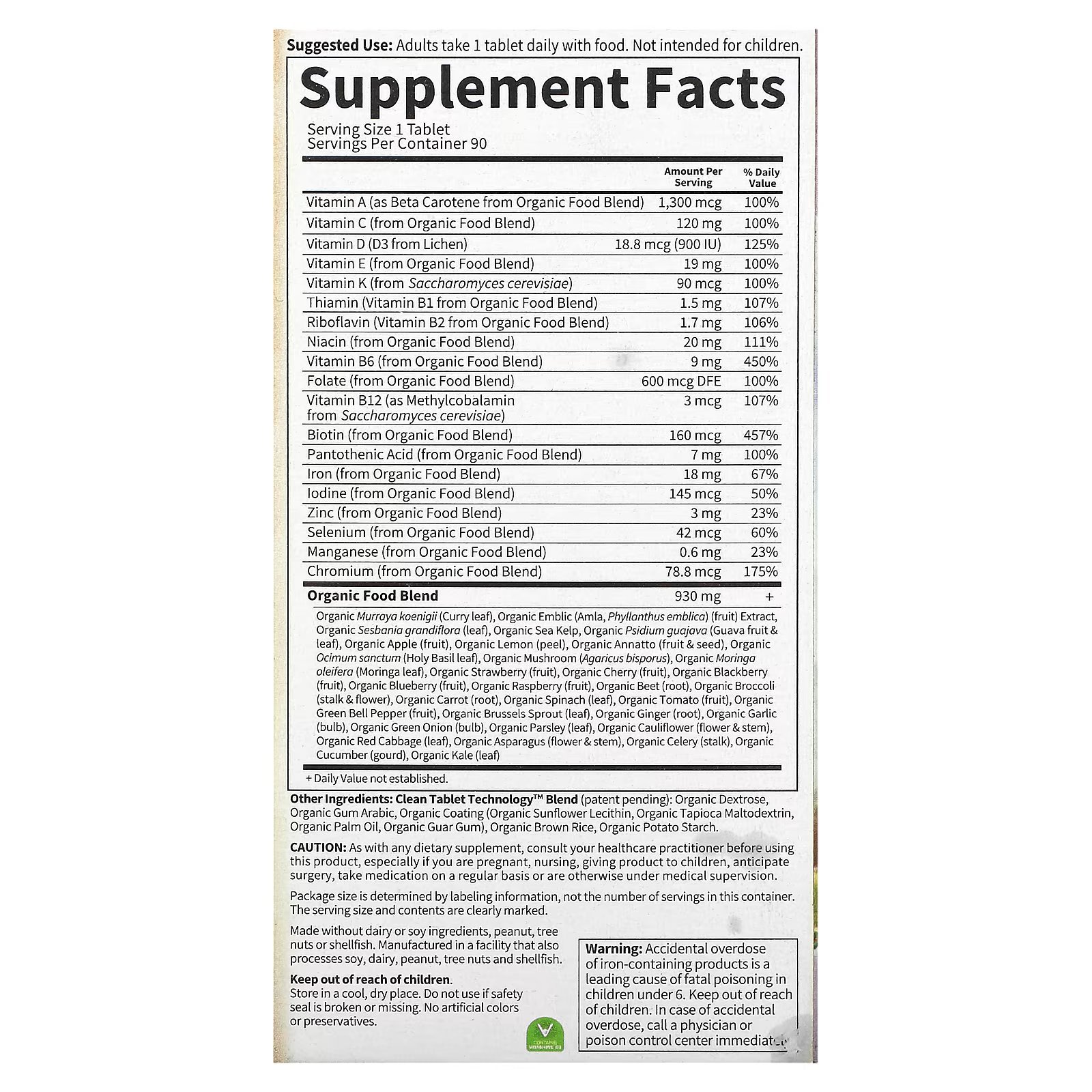 Whole Food Multi that’s certified organic, Non-GMO verified, from real, nutritious foods