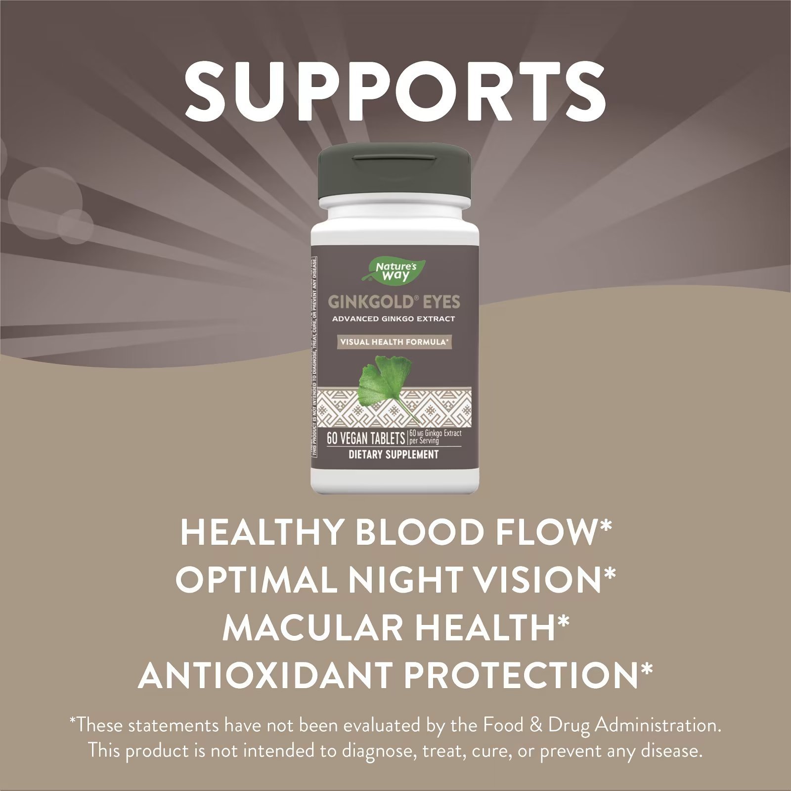 Ginkgold® Eyes contains a blend of premium botanical extracts designed specifically with eye health in mind. This formula includes Ginkgold extract and carotenoids, lutein & zeaxanthin for cognitive and visual function support.